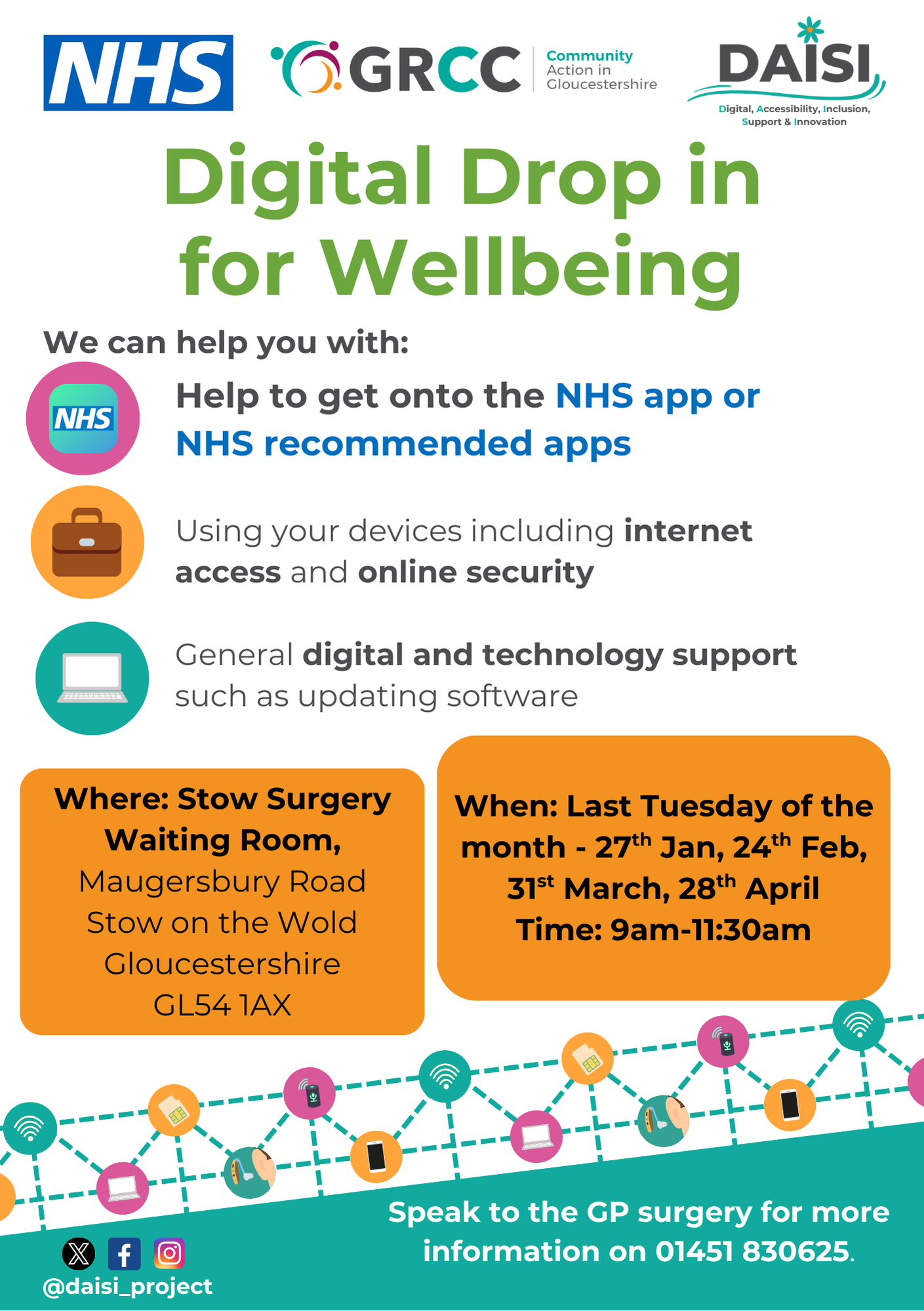Drop in for help getting on to and using the NHS App or other NHS recommended apps, help using your devices and general digital and technology support.